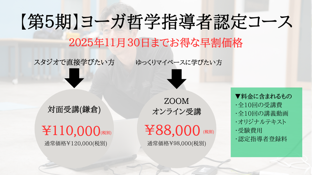 ヨーガ哲学を理解することによって、必ず指導力が向上し、生徒さんからより一層信頼されるヨーガ指導者になります。